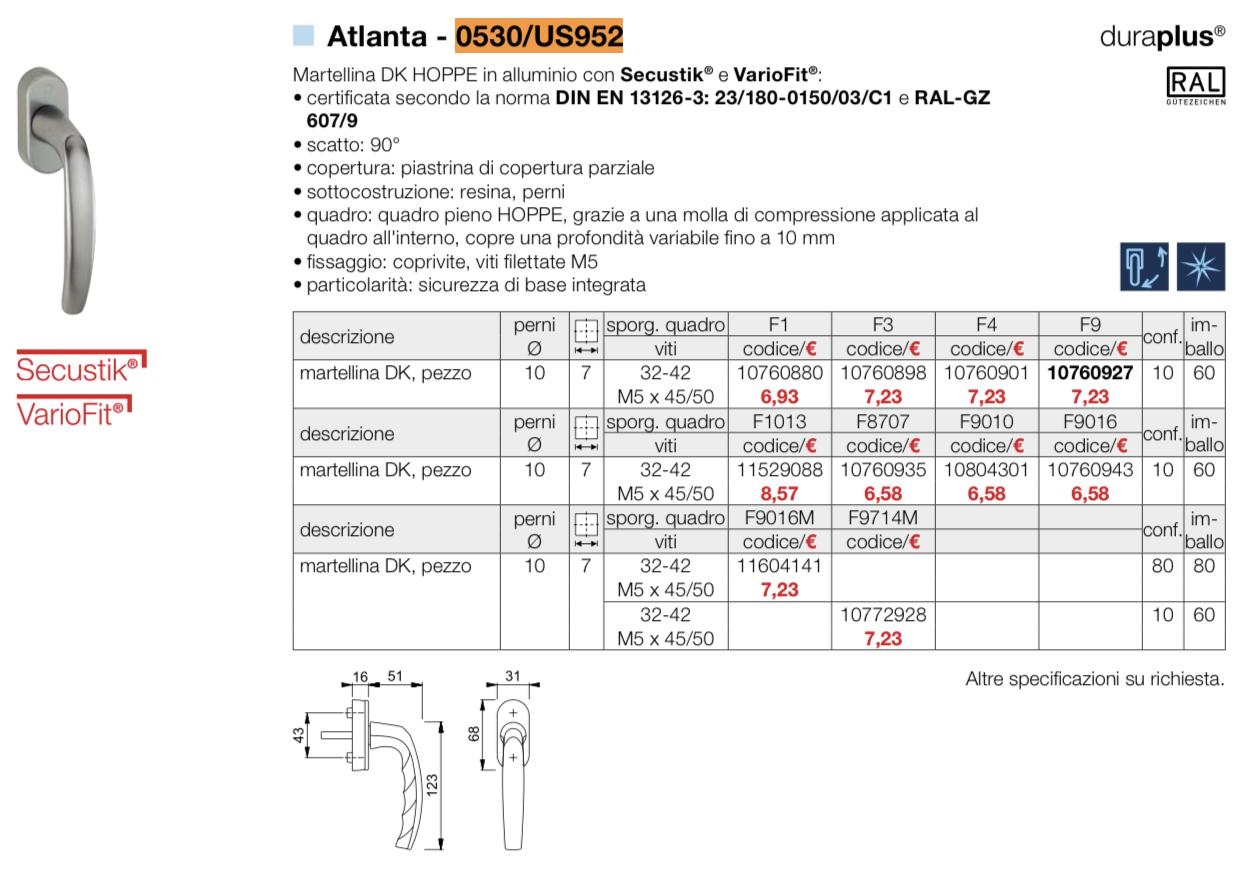 MARTELLINA ATLANTA SECUSTIK ARGENTO M5X45[#] (60)